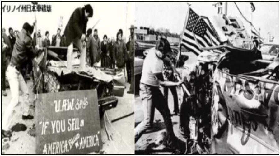 从1953年到1973年,20年的时间日本从一个农业国转型为世界上最大的钢铁和汽车出口国,比如以丰田为首的汽车公司在欧美大获成功,日货横行,大量美国工厂倒闭,失业人口增加,犯罪率攀升,那时美国还没想起贸易战,于是美国工人砸日本车成为常态化发泄。