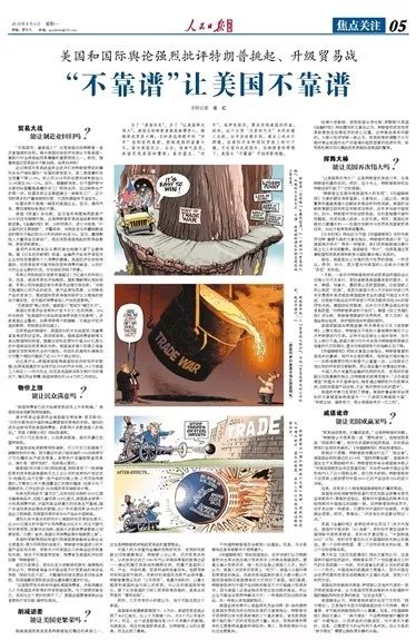 特朗普的很多批评者也都意识到了这一点。今天出版的《人民日报海外版》焦点关注版,集中梳理了特朗普批评者的一些观点,对于我们认识中美贸易战可能有不少参考价值。
