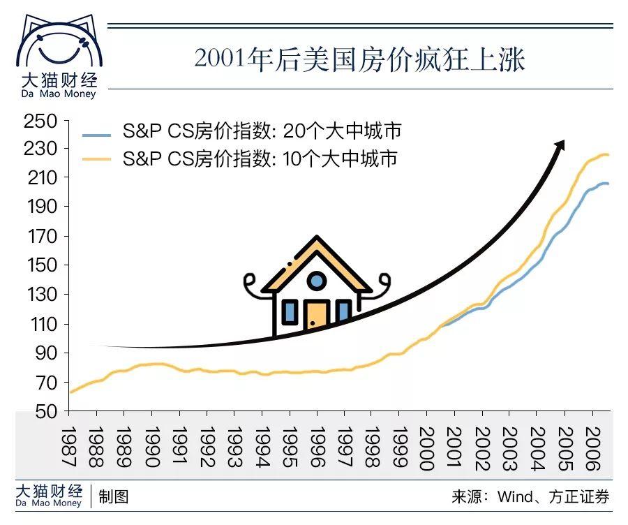 2001年,互联网泡沫破灭,以前一票难求的互联网公司股票都成了废纸,经济衰退,小布什总统当时的对策是刺激房地产,提出了“居者有其屋”这种唬人的计划。