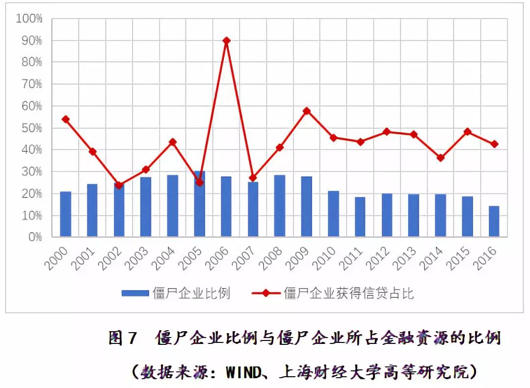 银行为什么会向僵尸企业进行输血呢,这是因为,长期以来,“保就业”“稳定压倒一切”等作为我国各级政府的政策目标,在政府的效用函数中一直占有相当重要的地位。我们发现,地方政府出于“保就业”“维稳”等动机,动用行政手段迫使商业银行向僵尸企业输血,而且使得这一绑架之势在2009年后愈发严重。我们的模型显示,2009年之后,僵尸企业的员工数占比每升高1个百分点,其获得的银行输血会增加0.04%。例如,2016年,僵尸企业获得的银行总授信约为4.5万亿元,那么0.04%就相当于18亿元。即僵尸企业和创造就业岗位越多的企业均可能获得更多银行授信,并且2009年后僵尸企业中员工数目更多的企业获得的授信显著增加,这说明2009年后商业银行对僵尸企业,尤其是能够帮助“保就业”的僵尸企业,输血的现象更加严重了。而商业银行对僵尸企业的输血不仅扭曲了金融资源的配置,更会对金融系统造成极大的风险隐患。