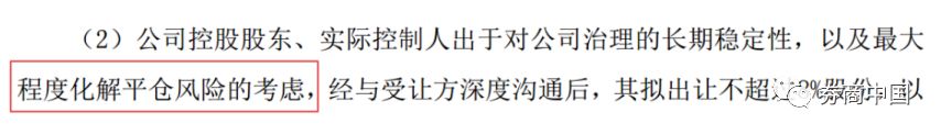 同时,公司控股股东“出于对公司治理的长期稳定性,以及最大程度化解平仓风险的考虑”经与受让方深度沟通后,其拟出让不超过8%股份,以解决其个人资金问题。