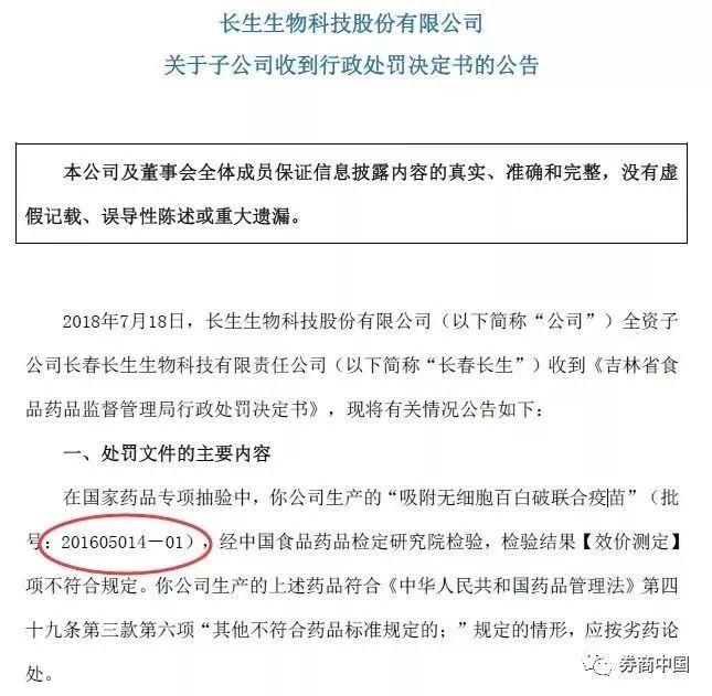 值得注意的是,7月23日,ST长生发布的调查通知书中显示,批号为201605014-01的百白破疫苗不合格。