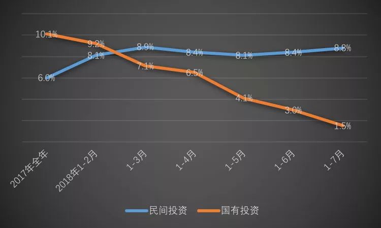 如图所示:今年民间投资数据不错,各月民间投资增速均高于全部投资且领先优势逐月加大。据国家统计局数据,一季度、上半年和1-7月份民间投资增速分别比全部投资高1.4、2.4和3.3个百分点