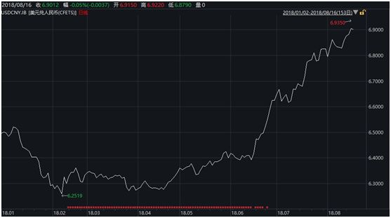 事实上,强势美元已给新兴市场国家汇率造成不小压力,因港元屡次触及弱方兑换保证7.85,香港金管局于8月15日全天分三笔,共在市场买入117.67亿港元,今日再次买入50.24亿港元,共计167.91亿港元。土耳其里拉兑美元汇率8月10日一度暴跌17%,迫使土耳其央行出台“降准+加大外汇资金流动性+资本管制”组合拳。