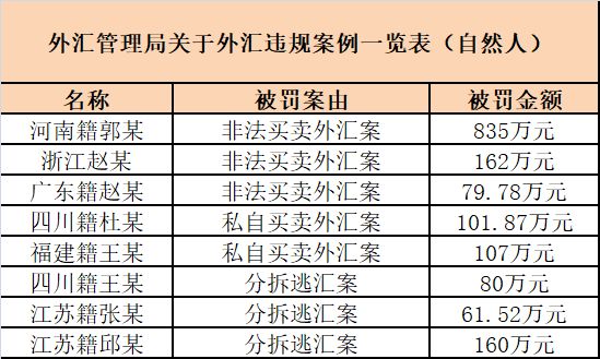 其中颇具看点的是,外管局查获了河南籍郭某试图通过地下钱庄非法向境外转移资产上亿元,对其开出835万元巨额罚单,创下今年以来外汇违规案例通报中的个人罚款纪录。
