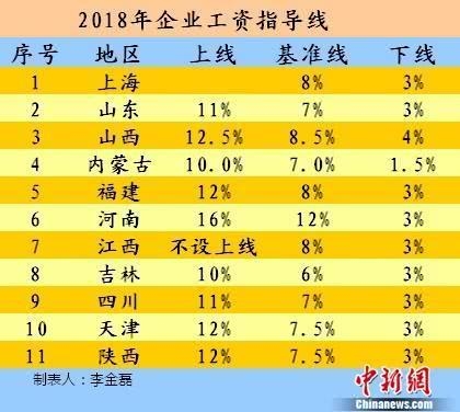 据中新网记者不完全统计,截至8月21日,至少已有上海,山东,山西,内蒙古,福建,河南,江西,吉林,四川,天津,陕西等11个省份公布了2018年企业工资指导线。
