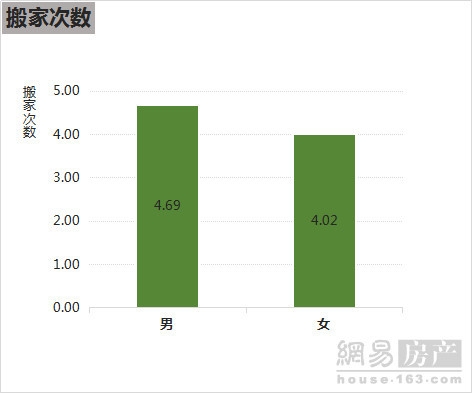 租房青年搬家的平均次数为4.56,男性为4.69次,比女性的4.02次更高。76.0%的人认为,无论是短租或长租,租房都给他们带来强烈的漂泊感。