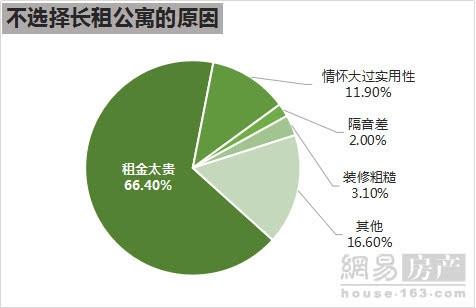 66.4%的租房者表示,不选择长租公寓的首要原因在于租金过于高昂,一线城市长租公寓基本在3000元以上,对大多数租房者来说负担过重。此外,不少长租公寓打出情怀牌,以社区文化为卖点,11.9%的租房者认为,长租公寓的情怀超过其实用性。
