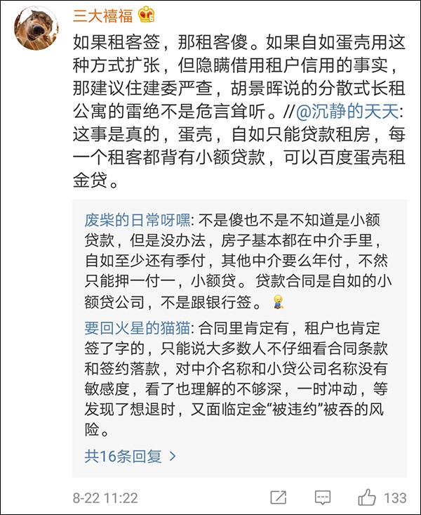 上述人士指出,自如、蛋壳公寓就是利用大量租房人的信用做背书,进行资金的期限套利。