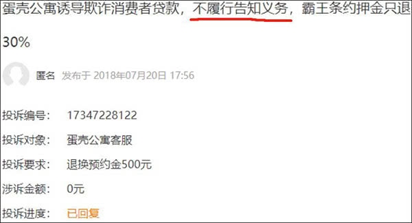 不过,自媒体“差评”发现,黑猫投诉平台最近的一些曝光中,确有租客表示,租房公司并未就“贷款”事项尽到告知义务,甚至推出一些“霸王条款”硬推租客贷款。