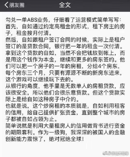 从银行的角度,手里是无数单子的房租贷款,应该很安全,所以,银行很乐意贷款,但这个贷款实际上是给自如这种中介机构的。