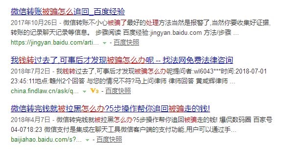 但是,骗子也是层出不穷,百度搜索“转钱被骗了”,就会弹出来很多求助信息。