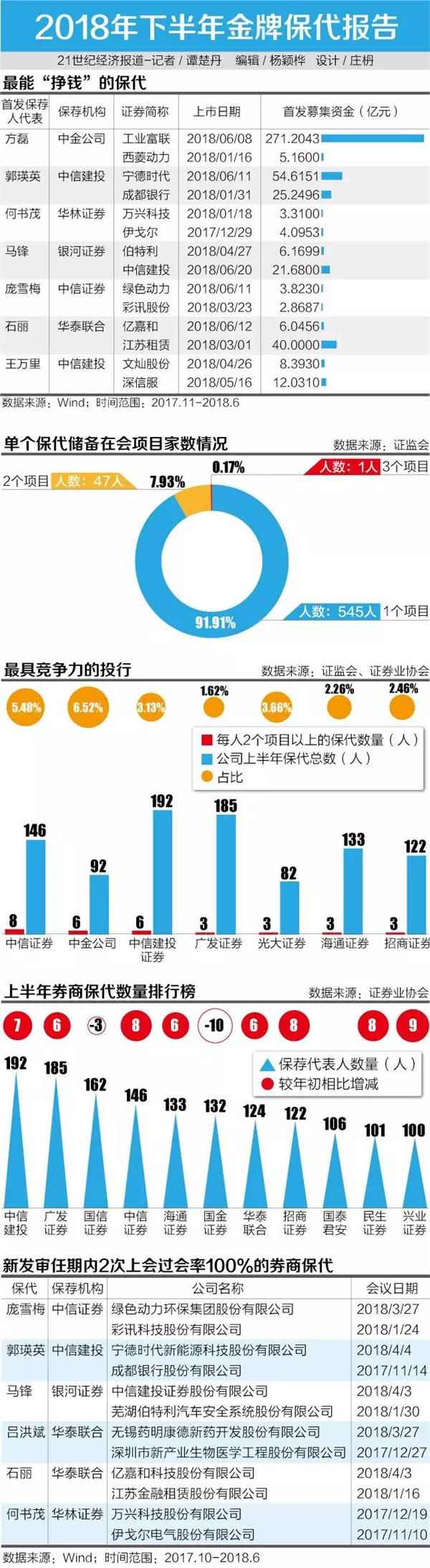 以在证监会正常审核的IPO项目为样本,根据21世纪经济报道记者对上半年的统计,共有593名保代有项目在排队,在上半年行业3553名保代总人数中占比只有16.69%。