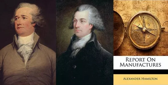 1791年12月,美国开国元老、财政部长汉密尔顿(Alexander Hamilton)和鼓吹关税、技术盗窃和贸易保护的经济学家考克斯(Tench Coxe),联合向国会提交了一份《制造业报告》(Report on Manufactures),这份报告是美国工业的第一份纲领性文件,露骨地表达了一个落后农业国赶超先进工业国的欲望和策略。