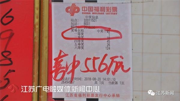 结果,当晚九点开奖后,就是这张彩票喜中一注一等奖,还中出了18注三等奖、45注四等奖、26注五等奖,总计获得奖金556万元。