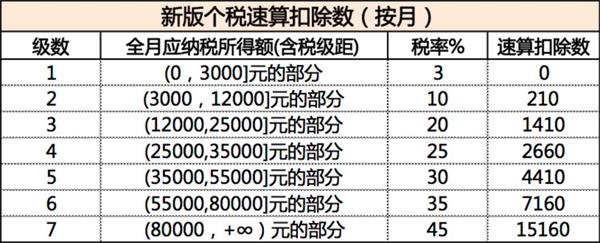 不同之处就是规划君框出来的部分,新税率还是3%-45%,只是对低档税率的级距进行了调整。