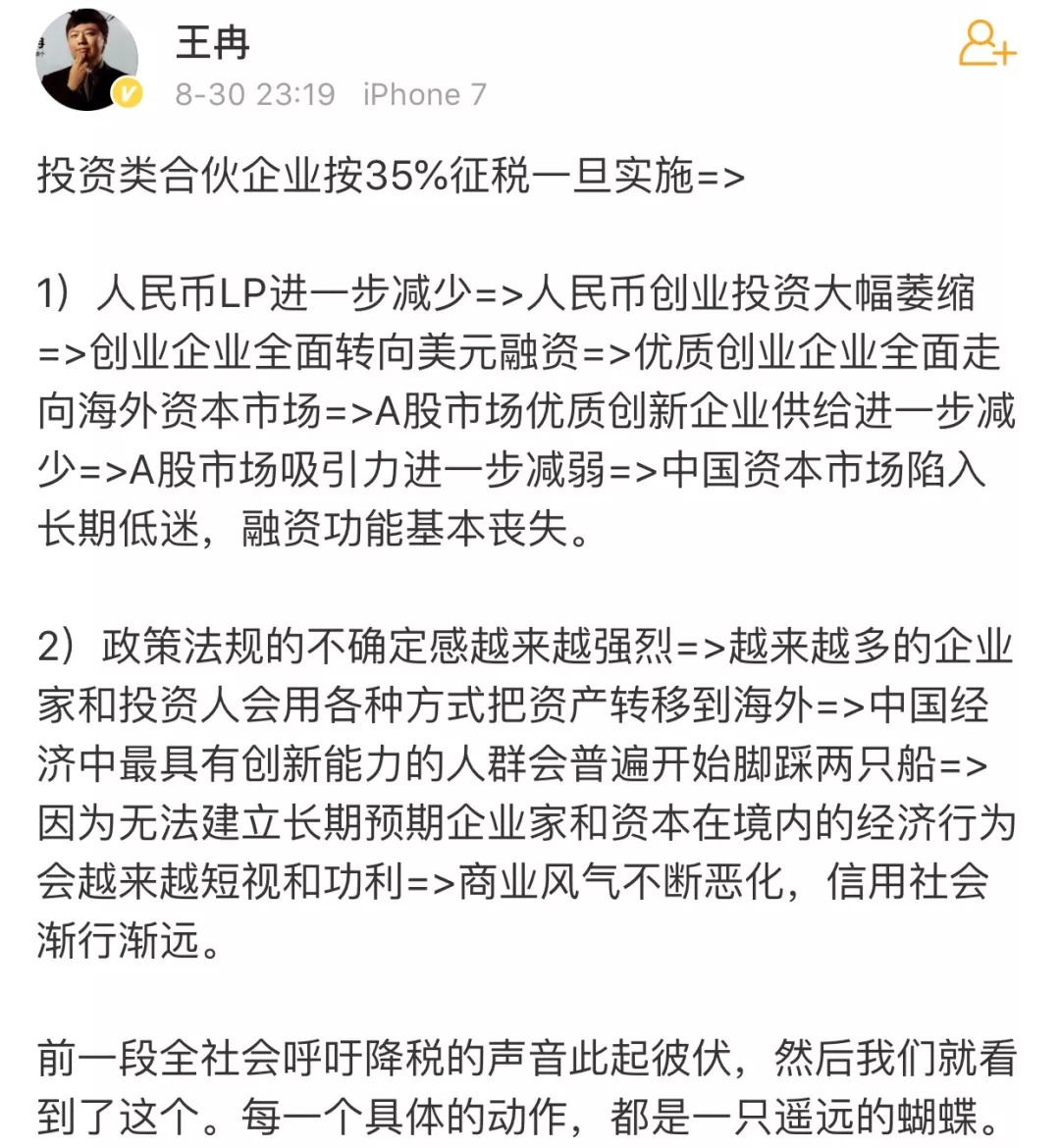 现在给创投基金的投资人加税,分明就是在赶这些人出局。
