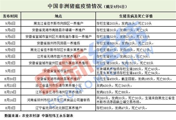 中新经纬客户端注意到,今年8月以来,辽宁、河南、江苏、浙江、江苏、安徽等地先后发生多起非洲猪瘟疫情。据央广网报道,从疫情地点来看,较为分散,多位于东北地区、中部地区和江淮地区;而从发病死亡猪的数量看,又都呈现数量大、致死率高的特点。
