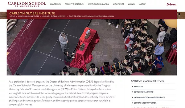 明尼苏达大学卡尔森管理学院官网介绍,中国工商管理博士课程由明尼苏达大学卡尔森管理学院与中国清华大学经济管理学院(SEM)合作提供,为中国高管量身定制。