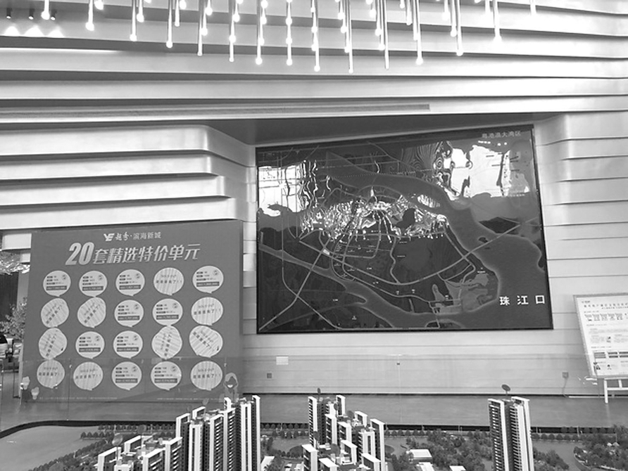 记者在现场看到,南沙保利城售楼部仅寥寥数人,只有一位年轻男子陪长辈在和销售人员了解楼盘情况,几名工作人员开着电脑在接待客户的椅子上办公。