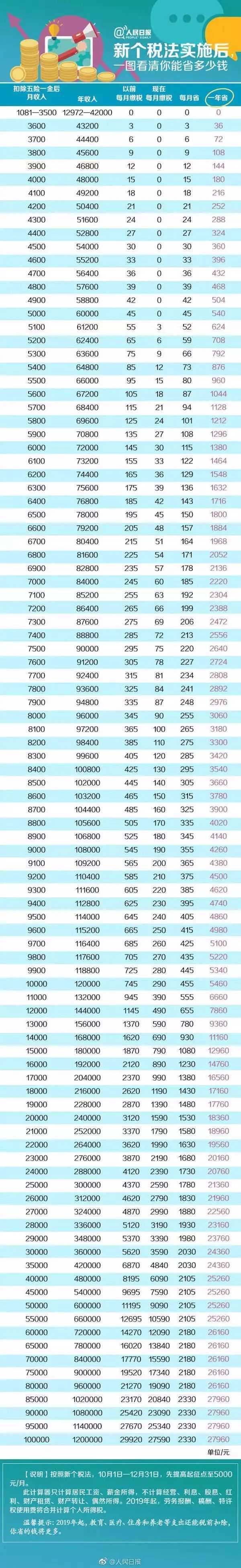 按照新个税法,快来看看一年你能省多少钱