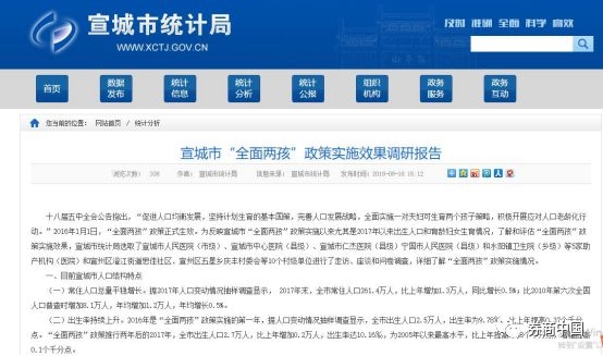 近日,地处华东安徽省的地级市宣城市统计局发布了一份“全面两孩”政策实施效果调研报告,或许可以作为一个“全面二孩”政策实施后的一个样本参考。