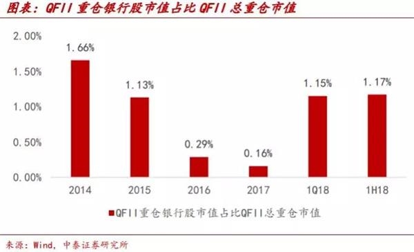 从持仓股所属行业看,中泰证券研报统计显示,银行股是重要配置对象,主动配置18年呈上升趋势。