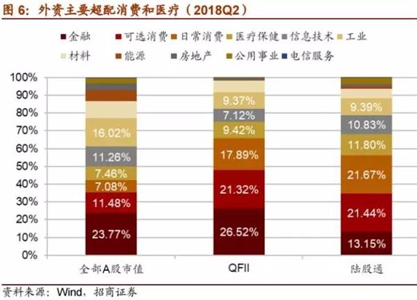 招商证券认为,从行业分布来看,外资总体明显超配消费和医疗,低配中上游行业,且陆股通低配金融,QFII低配信息技术。