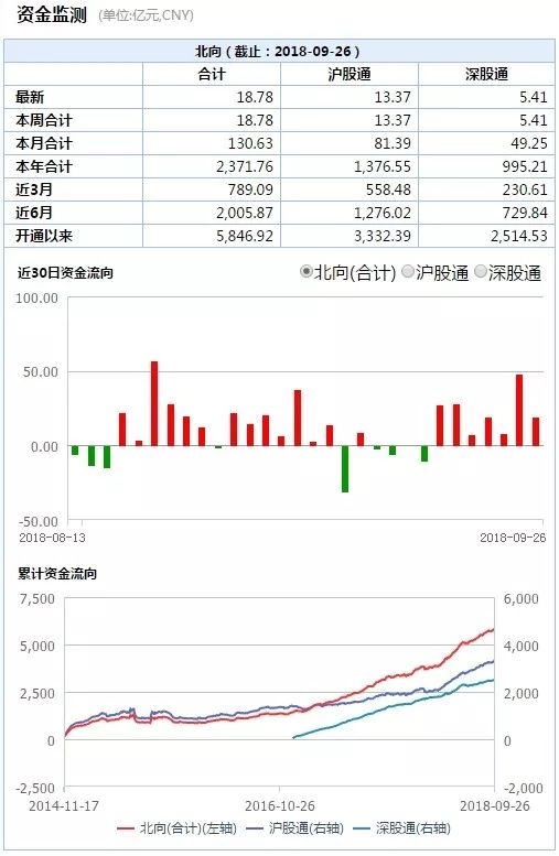 实际上,受到A股国际化加速影响,陆股通标的近期获海外资金加持明显。截至目前,9月以来,沪股通资金净流入81.39亿元,深股通资金净流入49.25亿元,北上资金合计净流入逾130亿元。