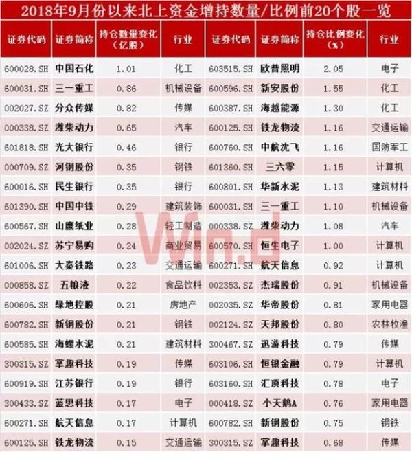 数据统计显示,纳入MSCI标的的A股中,仅9月份以来就有131只个股获得北上资金增持,其中中国石化期间获增持规模达1.01亿股,另有22只个股的增持规模过千万股。