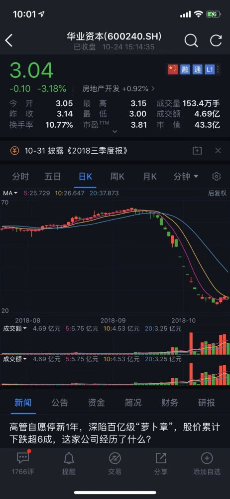 华业资本在二级市场的变现只能说惨不忍睹,在这轮百亿骗局危机之前,就已经开始暴跌,而在危机曝光后,曾连续四天连续跌停