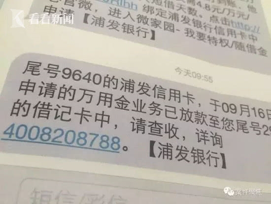 丁小姐的噩梦并没有完。在余额被盗之后,她还遭遇了信用卡被盗刷,甚至“被申请”了7万元的浦发银行万用金贷款,而这些债务,自然都算到了丁小姐的头上。