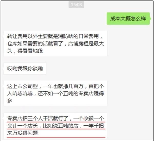当然,3个店员年入千万、三年回本的好行当,不是随便什么人能参与的,要么有很强的运营能力,要么有特别硬的关系才能批到,而且2250这个门槛也不是我们普通人随便能够得着,那10吨份额的,15吨20吨份额的就更难拿到了。