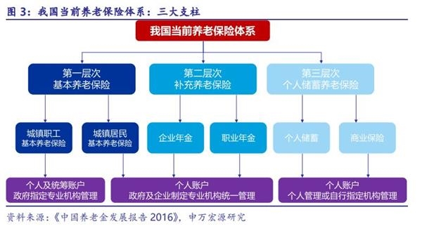 申万宏源曾发布研报称,我国养老保险体系三大支柱发展不均衡,养老金支付严重依赖基本养老保险。我国第一支柱为基本养老保险,覆盖面最广,规模最大(加上全国社保,占比超过80%);第二支柱为企业补充养老保险,处于相对短板的阶段(占比不到20%);第三支柱个人养老金目前尚处于起步阶段;而美国三大支柱的比例分别为9%、54%和37%。