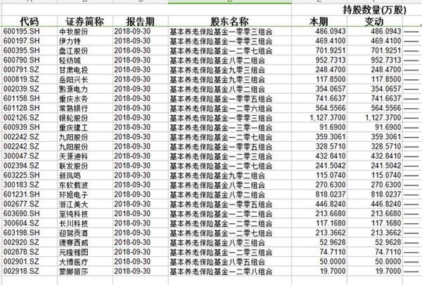 其中基本养老保险基金新进持有的个股包括中牧股份、伊力特、盘江股份、轻纺城、甘肃电投、岳阳兴长、黔源电力、重庆水务、常熟银行、银轮股份、重庆建工、九阳股份、天源迪科、联发股份、新凤鸣、东软载波、环旭电子、浙江美大、至纯科技、长川科技、迎驾贡酒、德赛西威、元隆雅图、大博医疗、蒙娜丽莎等。