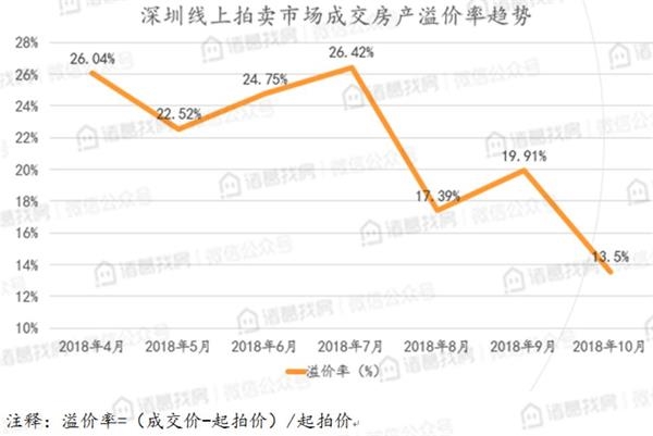 10月份,深圳来自阿里拍卖上成交的房源溢价率来看,溢价率出现明显下滑。