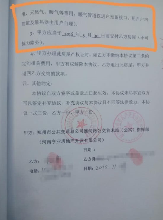 按照购房协议约定,位于郑州市秦岭路淮河路交叉口的公交公寓项目该在2016年5月30日前交房。