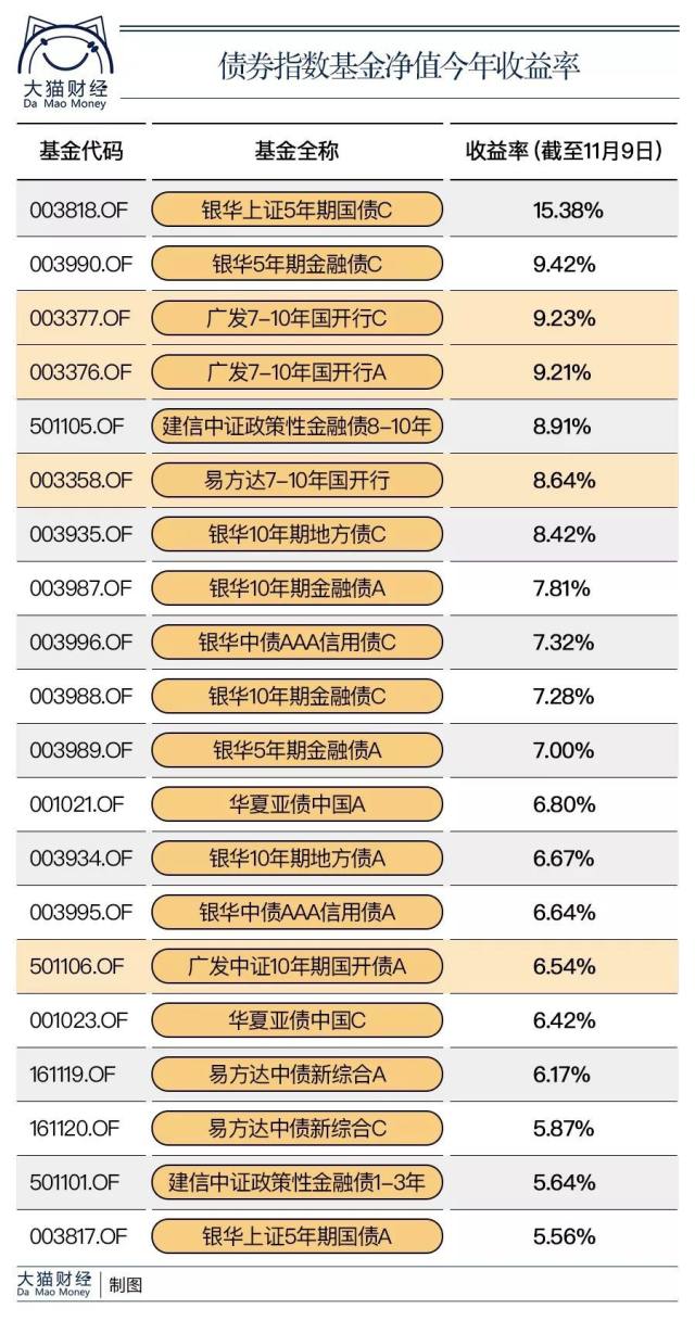 而在里面,国开债指数基金收益更是领头:比如广发、易方达的一款产品收益率均在8%-9%。