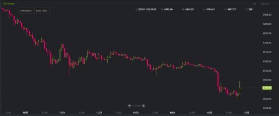 11月25日,比特币再次出现大跌,一度跌幅高达14%。据bitstamp平台显示,北京时间25日下午6:24分,比特币跌破3500美元关口。但是随后反弹,截稿时,报3779.37美元。