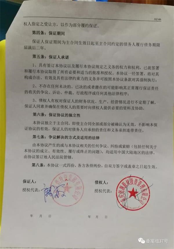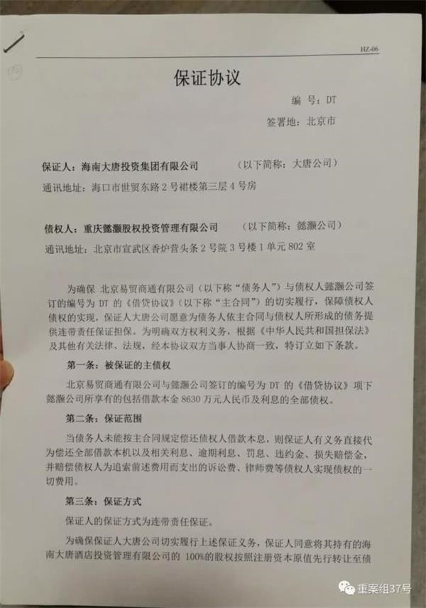 2011 年3月11 日,重庆懿灏公司与海南大唐公司签订编号为DT的保证协议。 受访者供图