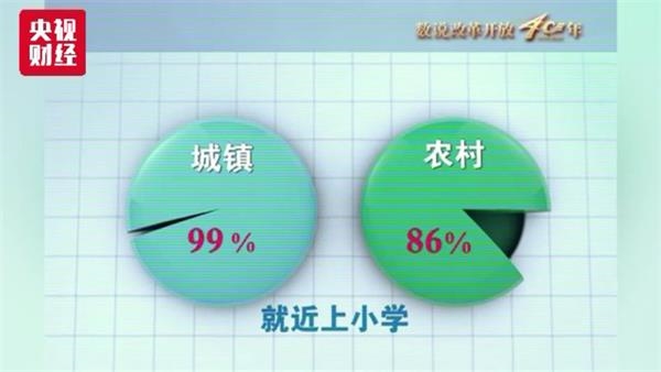 教育服务水平也明显改善,目前近99%的城镇家庭和86%的农村家庭,都可以就近上小学。