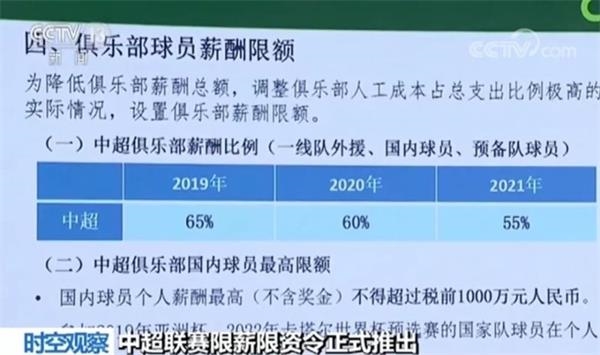 此次新政在个人薪资方面就规定:最高不得超过税前1千万元人民币,参加亚洲杯和世界杯预选赛的国家队球员最多可以有20%的上浮。