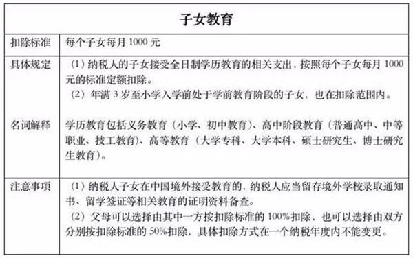 子女从满3周岁至教育结束,不论处在什么教育阶段,不论是在中国境内还是境外接受教育,均可按照每个子女每月扣除1000元,或由夫妻双方每人各扣除500元计算。