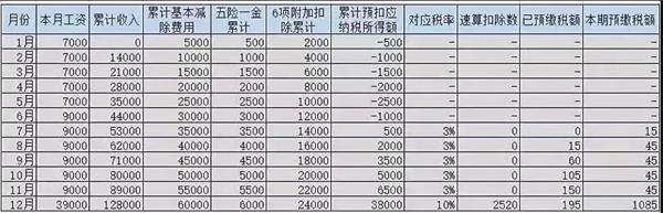也就是说累计预扣预缴法下,每个月都是累计相加计算,好处是减小个别月份工资大幅波动带来的影响,大大减少办理汇算清缴的几率。而发年终奖时,也可以不用再担心当月税率过高了。
