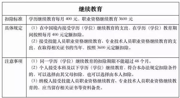 学历(学位)继续教育:4800元/年;技能人员职业资格继续教育、专业技术人员职业资格继续教育:3600元/年。在职研在职博的学费都可以抵扣,但是考车本,考钢琴的等级证书肯定不可以。