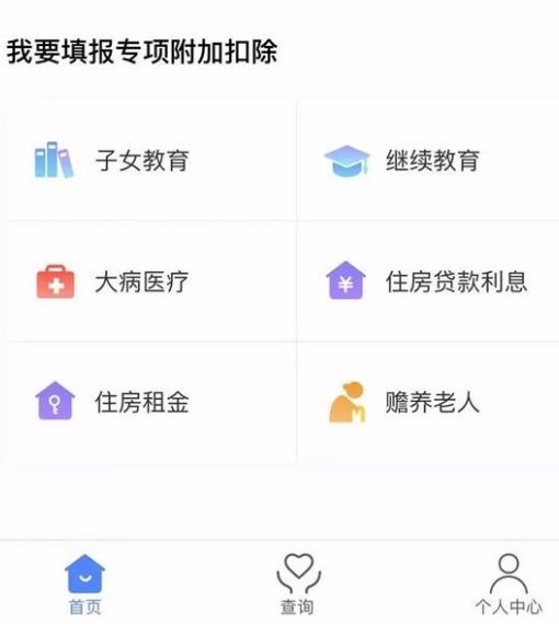 在APP上完成实名注册后,进入首页就可以填报子女教育、继续教育、大病医疗、住房贷款利息、住房租金、赡养老人六项支出扣除信息。