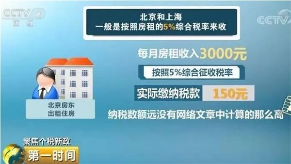 对此央视财经也引述专家的话对此进行了辟谣,很多地区对于个人出租住房按一个较低的综合税率简易征收房租的税金。比如北京和上海,一般是按照房租的5%综合税率来收。