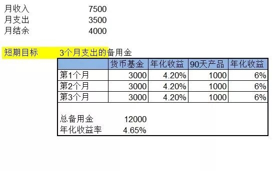 第一目标是攒出来3个月备用金,第二目标是让这笔备用金尽快开始实现循环。