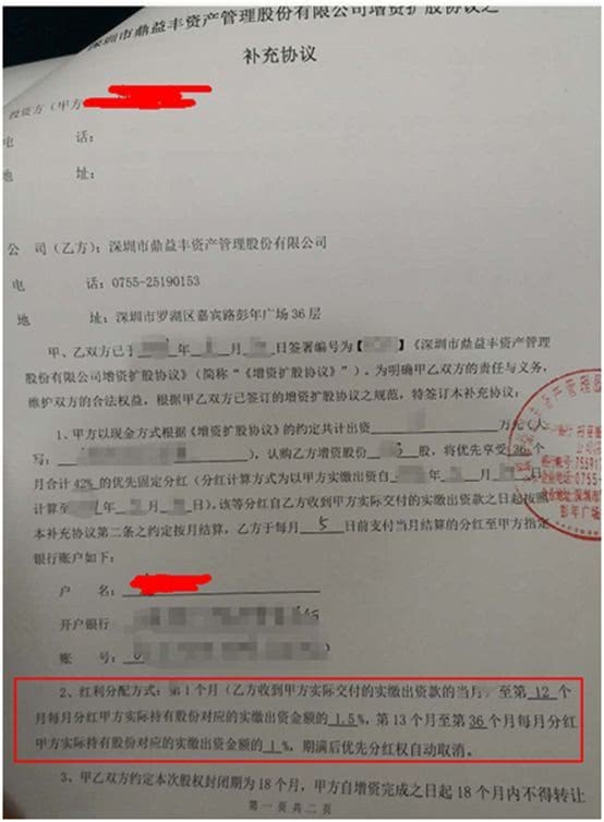 (合计42%的优先固定分红合同,鼎益丰原始股认购协议)