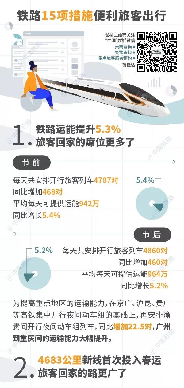 一年一度的春运已经拉开帷幕。2019年铁路春运从1月21日起至3月1日止,共40天。全国铁路预计发送旅客41330万人次,日均发送1033万人次。为做好2019年铁路春运服务工作,铁路部门推出15项便民利民措施,让旅客体验更美好。